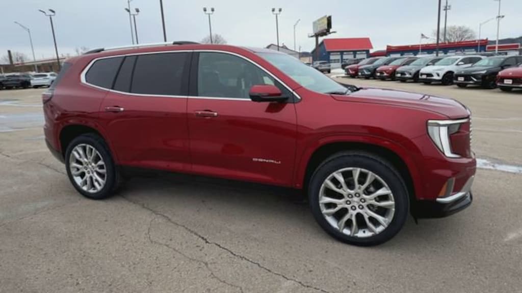 Volcanic Red Tintcoat 2026 GMC Acadia Denali AWD 8-Speed Automatic 2.5L DOHC AWD, After Dark Leather.